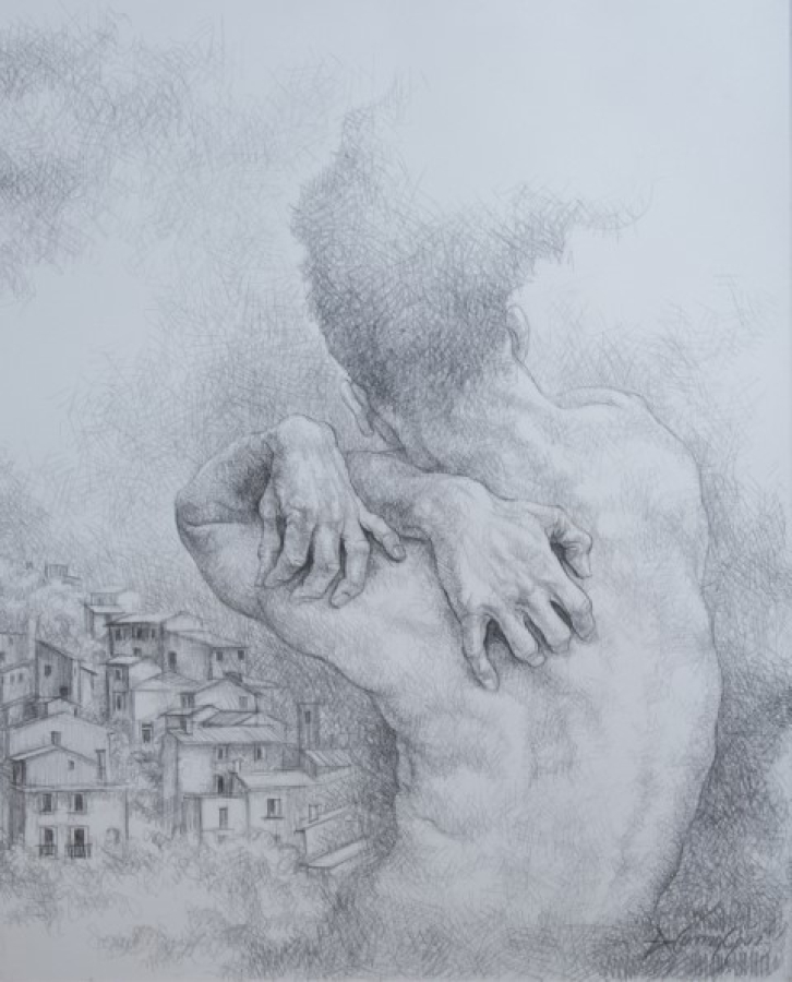 Kağıt üzerine kurşun kalem, 23 x 23 cm.