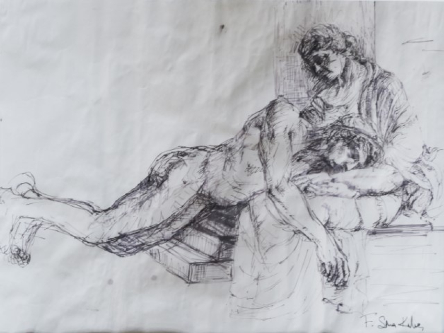 Kağıt üzerine desen , 35 x 50 cm.