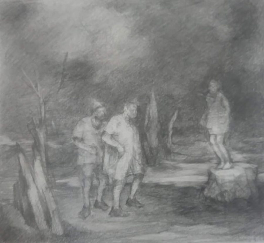 Kağıt üzerine desen , 20 x 28 cm.