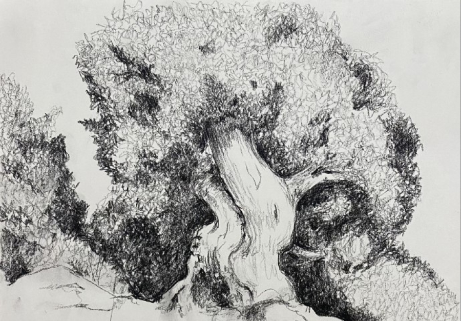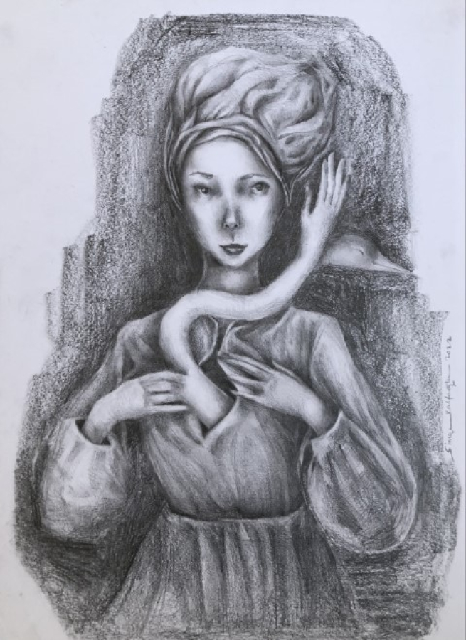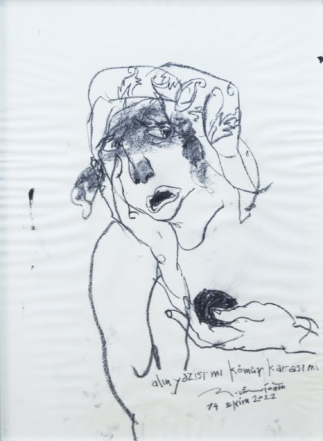 Kağıt üzerine kömür, 2022, 30 x 26 cm.